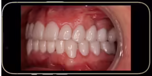 Next up, we need to see your smile from the left side. Still biting down on your back teeth, pull your cheek back either with your fingers or using a spoon.