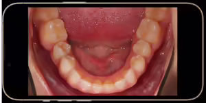 Almost done: just one shot left! This time, we need to see your lower teeth.